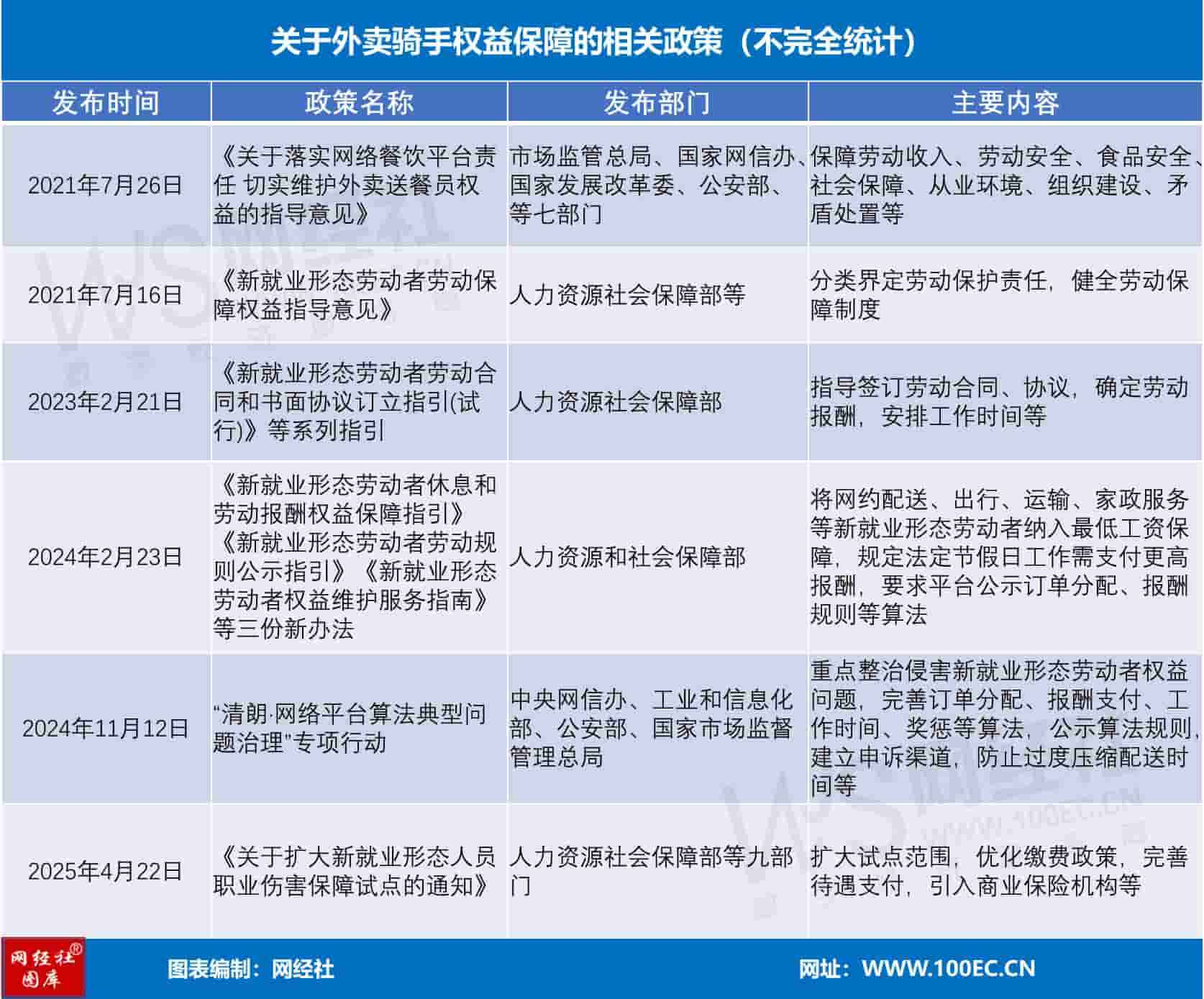 改革探索阶段的标志性事件是2024年11月中央网信办等四部门联合开展的"清朗·网络平台算法典型问题治理"专项行动,要求"保护劳动者合法权益,完善平台订单分配、报酬构成及支付、工作时间、奖惩等相关算法"。这一政策为骑手权益保障提供了更明确的指导。