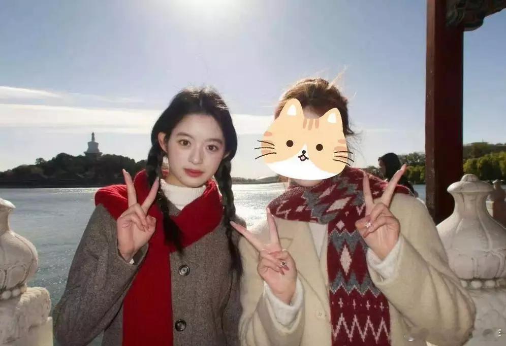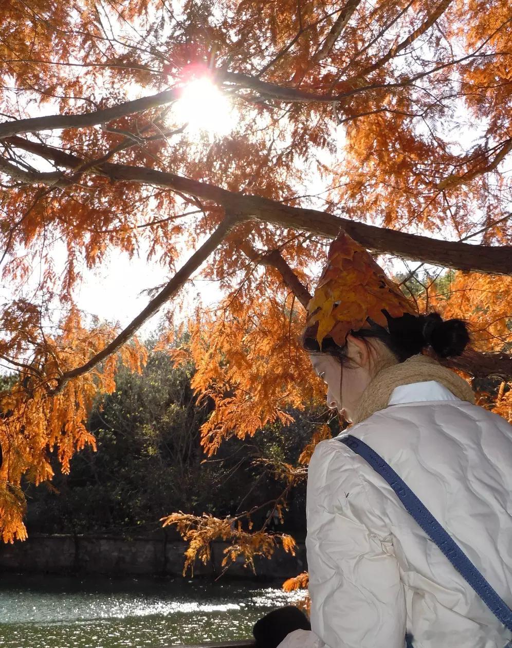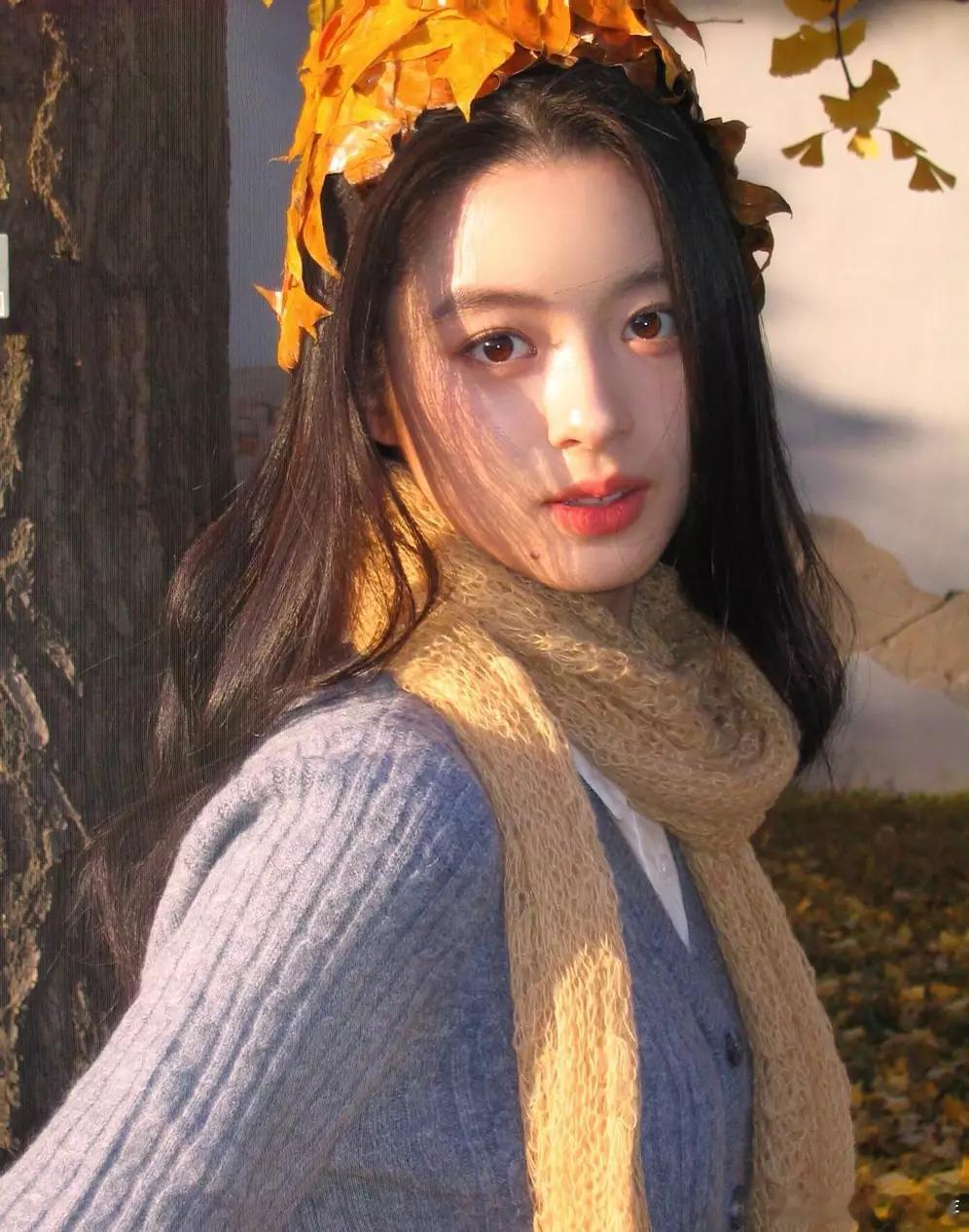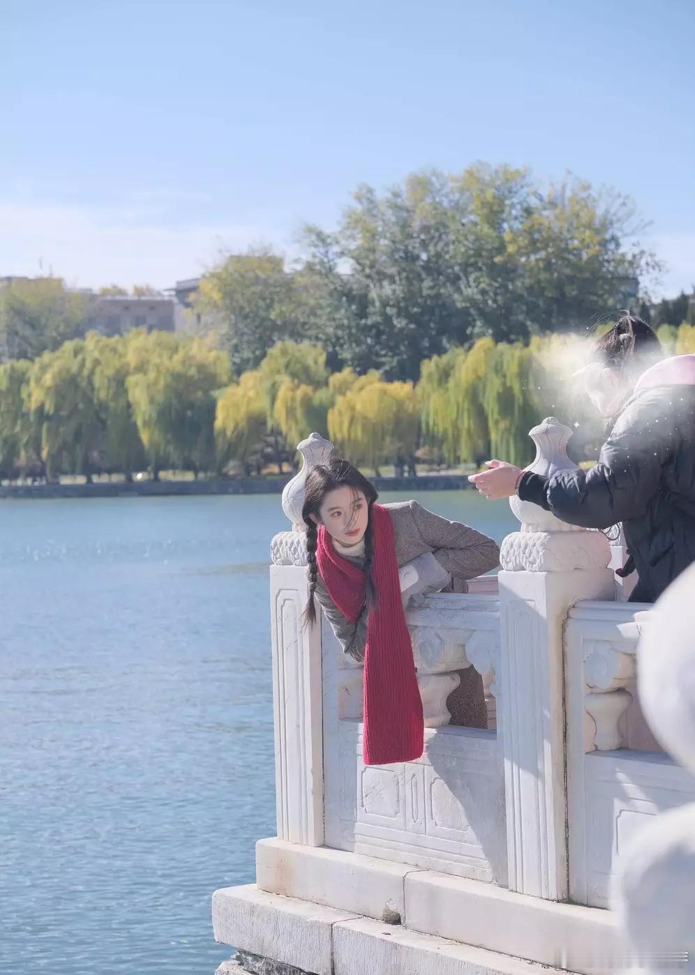 黄杨钿甜她穿着大衣,搭配红色毛衣,化身文艺片女主角。