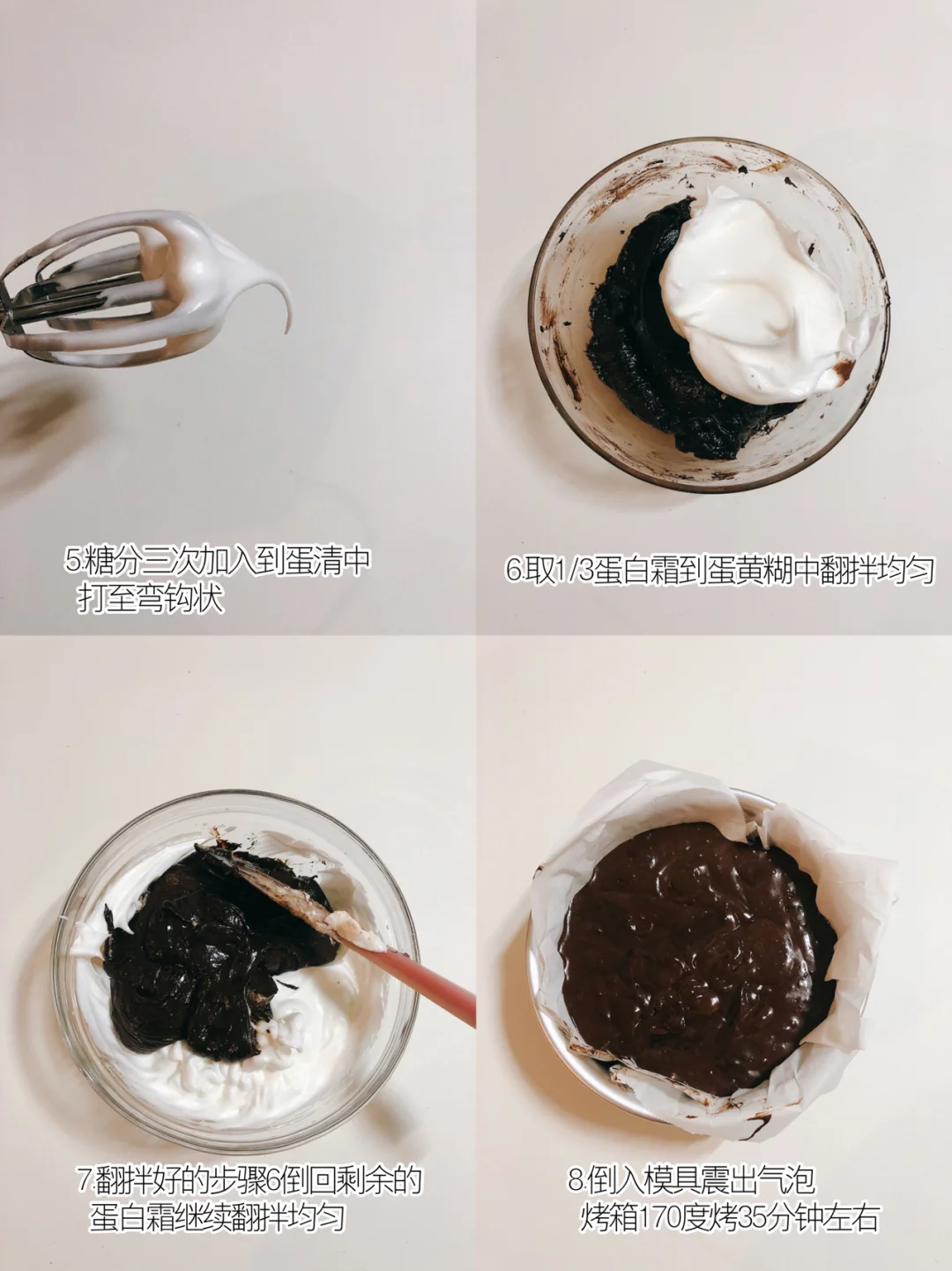✏️蛋糕出炉时,蛋糕的内部要有一点流心状态,所以才会形成凹面,自己观察一下哦。即使烤过了也没关系哈,可以趁热用手按下去,或者等凉了以后,用勺子🥄将蛋糕中间挖空[斜眼R]