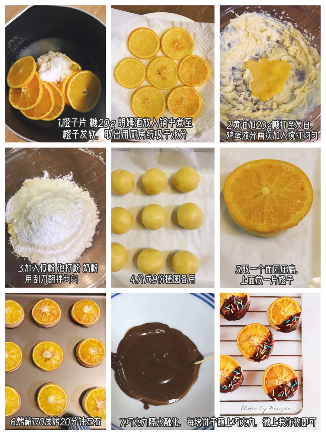 ❺将面团分成8份滚圆,每份大概25g左右。取一个面团压扁再盖上一片橙子即可。