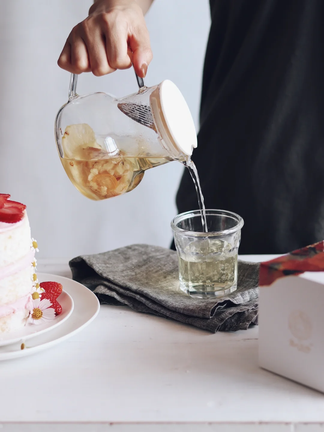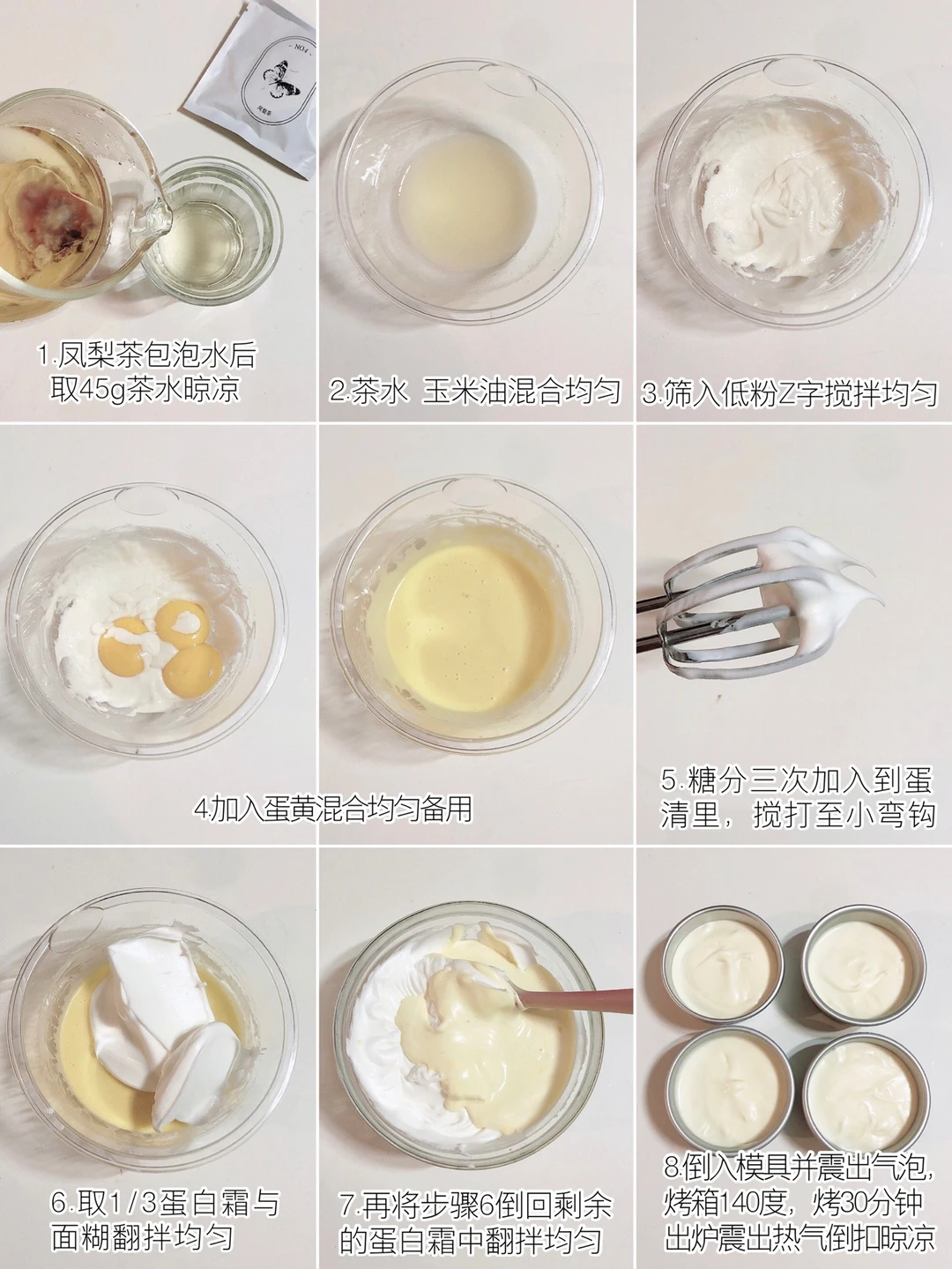 ✔️我把平时喝的贪吃丛林的凤梨茶水加入到戚风里了,这个口味我很喜欢,酸甜的凤梨味还混合着桂花的香气~当然你们也可以用牛奶或水代替哦。