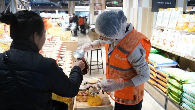 门店场景与服务同步升级焕新。店内空间通透规整,分区科学合理,货架陈列兼顾拿取便捷性与视觉质感,细节处尽显人性化设计;热销商品精准匹配消费需求,烘焙区“核桃满满面包”“鸡肉大披萨”、熟食区“现煎牛肉蛋堡”“北京烤鸭”、零食区“香辣蟹黄面”“张小米小米锅巴”等单品,均基于真实消费回购数据精选而出,成为顾客口中“闭眼入不踩雷”的放心之选,开业期间各爆款区域均排起长队,消费热情持续高涨。服务层面诚意拉满,一站式服务台、顾客休息区、免费便民设施等配套齐全,员工全程热情引导、细致讲解,全方位贴心服务让每一位顾客都能感受到“品质生活、平价体验”的消费理念。