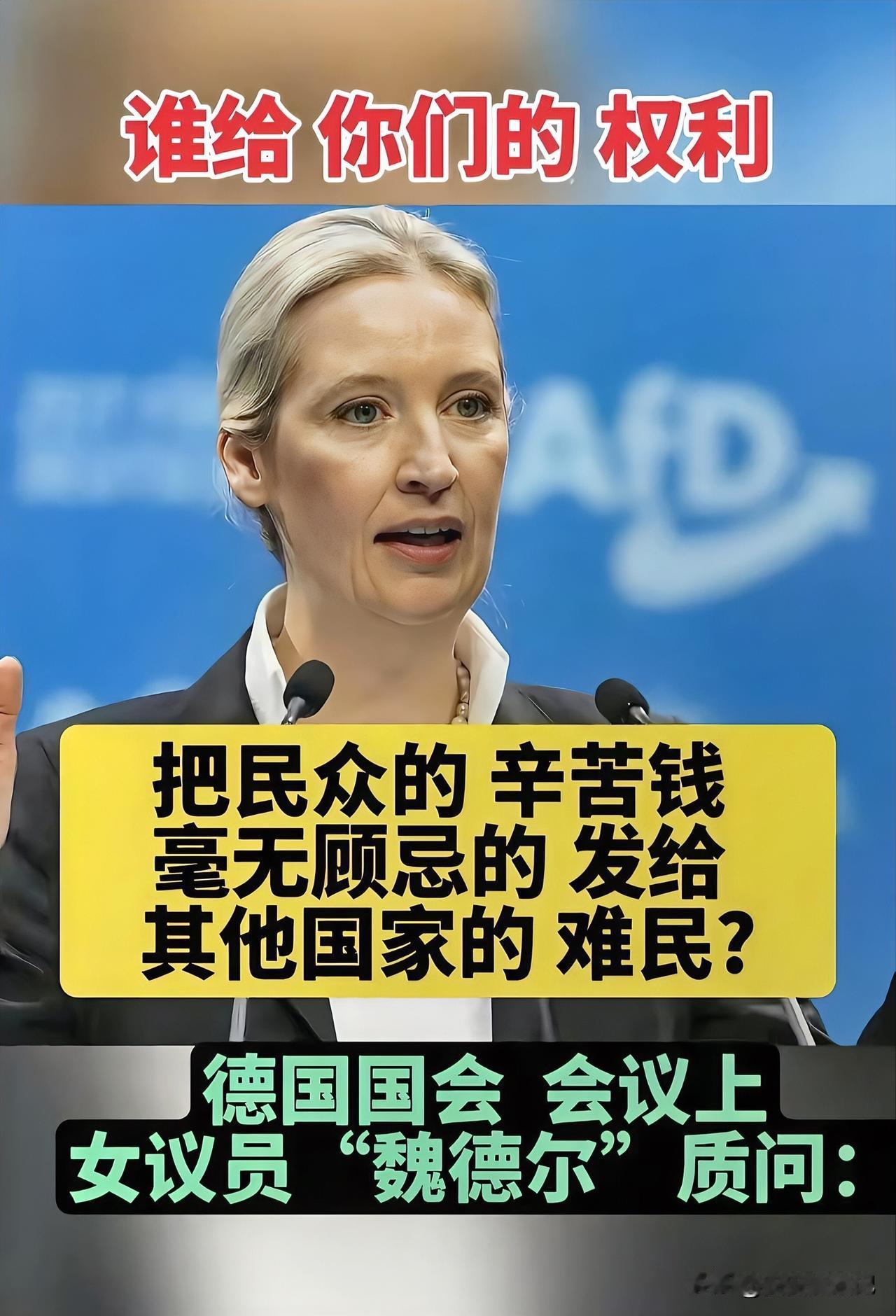 德国议会会议上的怒批可太有看点了。女议员魏德尔质问“谁给了你们权力,把民众辛苦钱发给其他国家难民”。近年来德国接收大量难民,2022年接收人数达数十万,这给社会福利体系带来巨大压力,民众经济负担加重。魏德尔认为移民政策失控,非法移民加剧住房危机和安全问题。 另外,默茨与冯德莱恩围绕2万亿欧盟预算也闹得不愉快。德国政府抨击预算大增和新企业税,凸显出欧盟委员会与德国的利益冲突。看来德国在资金分配和预算问题上,内部矛盾不小啊。