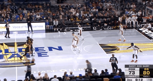 瞄准镜!库里面对克林根又打成一个! 在今天NBA季中锦标赛勇士对阵开拓者的第三节比赛中,库里突破后倚着克林根再次拉杆上篮打成! 在今天开局3投0中后,库里此后连进10球,目前已经拿下了全场最高的27分!