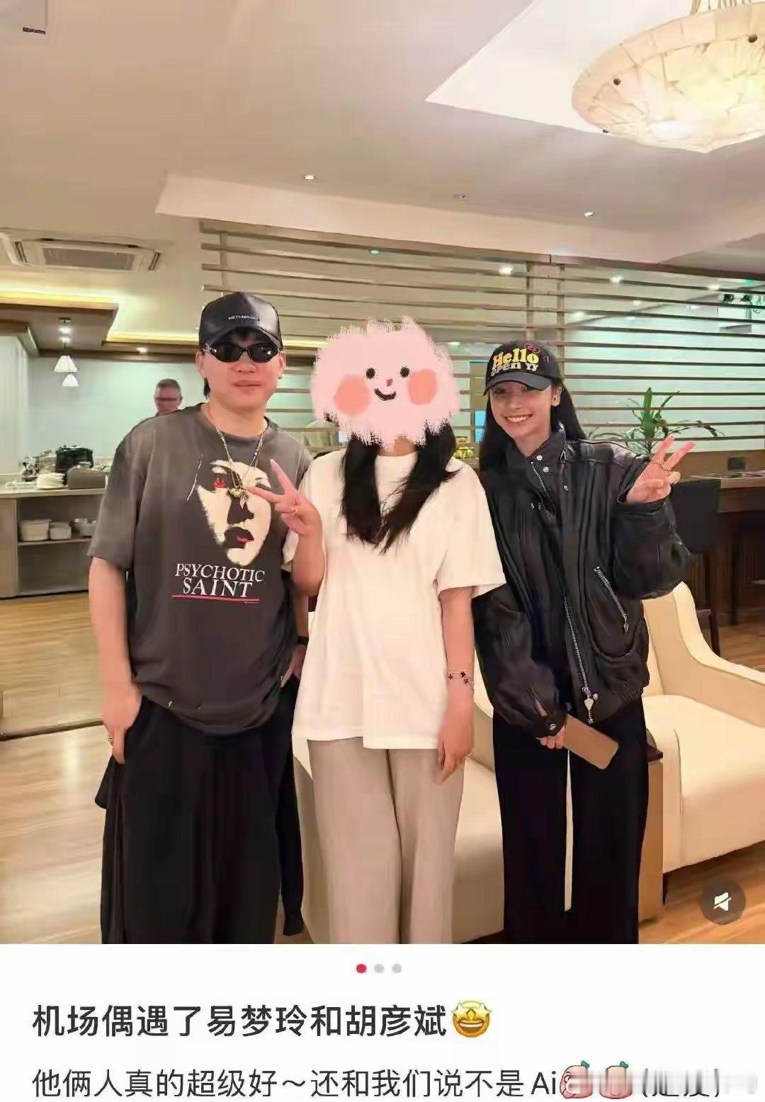 21日,胡彦斌与易梦玲现身机场被偶遇,二人从马尔代夫一起回国!胡彦斌和粉丝合影时还说:“社交媒体发一发,告诉他们不是AI的。”疑似承认与易梦玲恋情。此前,易梦玲和胡彦斌在海边接吻的视频引发热议。红星新闻记者联系上易梦玲,求证她与胡彦斌的关系,易梦玲表示:“那个视频是AI的,我也不知道怎么会,好好笑哦。”记者追问她现在是否在马尔代夫,她挂断了电话
