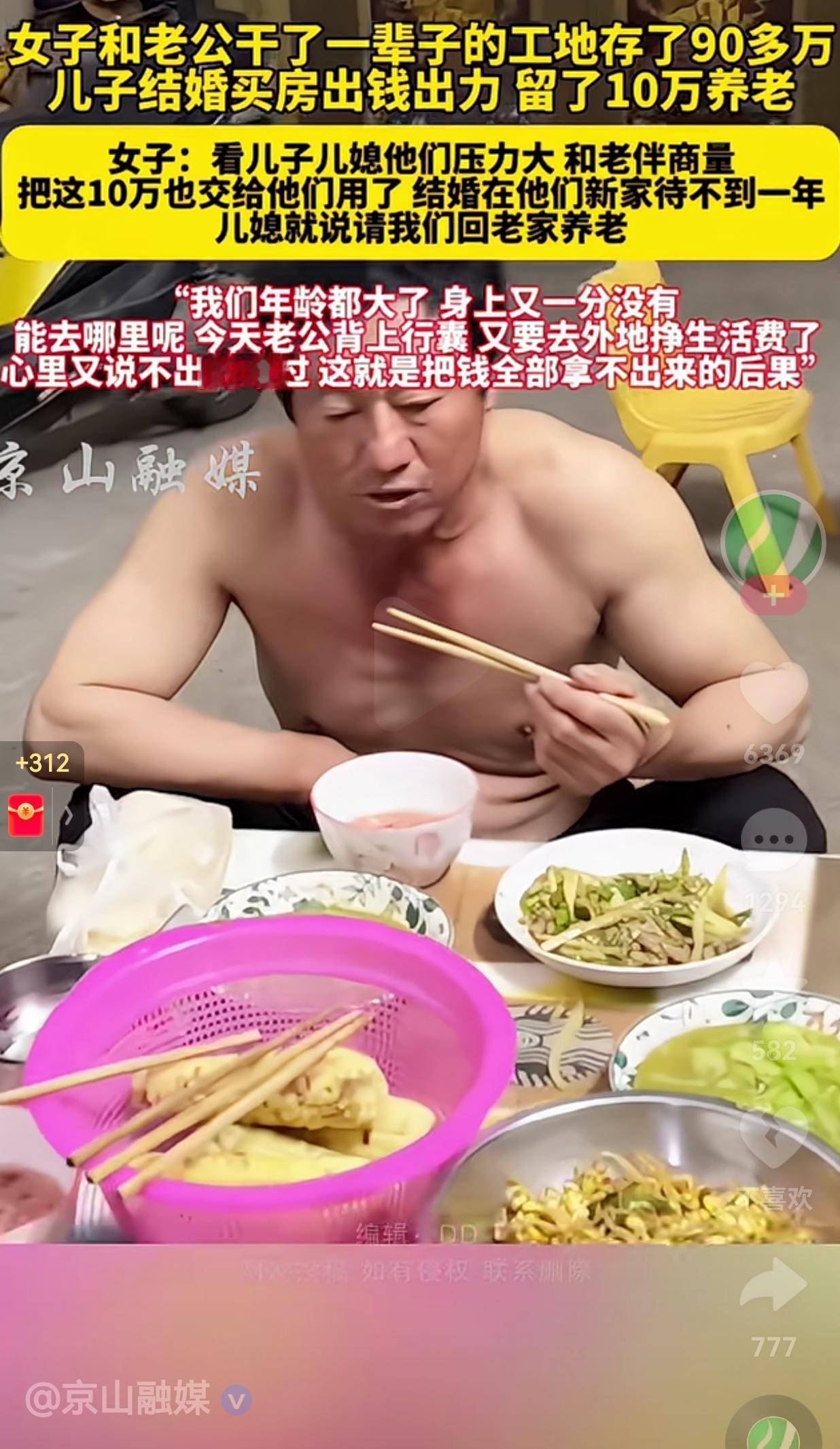 真的是既心酸又无奈!女子和老公干了一辈子的工地,一共存了90多万块钱,儿子结婚时
