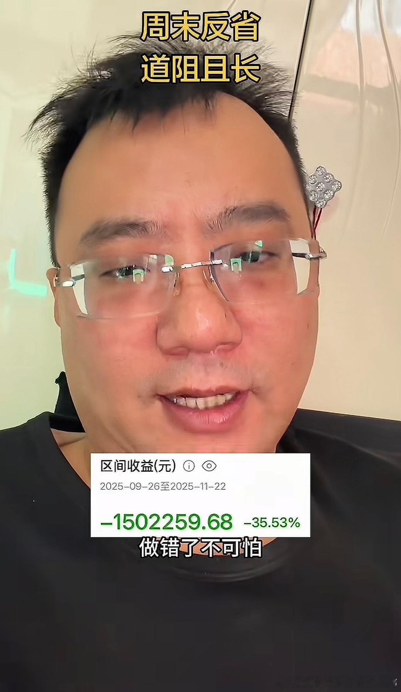控制情绪: 男儿有泪不轻弹,只是未到伤心处?自从“大曾子”亏了大哭、泪眼婆娑涨粉又涨赞,还大幅增加付费会员,顺便收割一波流量费!现在我关注的几个抖音网红都开始走卖惨路线博眼球,“胡子哥”上周五也是眼泪哗哗的,“接盘哥”9月26日-11月21日就巨亏了35.53%,他们都是有一定知名度的财经网红,每个人会员都好几百人,不管是演技还是性格,大喜大悲都是情绪化,是实战时间不长的表现! 但凡入市十年以上的老股民,谁没经历过刻骨铭心的大亏?只是经历多了就麻木了,同时也免疫了,股市无情每一次买入都有亏损风险,没有股神!上周五据传陈小群一天巨亏几千万,人家本金多格局也大,不可能只见花开不见花落,平常心对待吧! 上周五我也巨亏,但是我喜欢分享喜悦,晒当月大赚收益,不喜欢晒单日亏损博同情!我就是亏光也不会哭了,当然我没有任何杠杆不可能亏光!成年人都应该为自己的一举一动买单,男儿膝下有黄金,男儿有泪不轻弹! 周末了,多陪伴家人,是自愈也是疗伤,成年人谁不是跌到了自己爬起来,拍拍灰尘继续前进!中年男人更是如此,上有老下有小压力山大,我连跟父母诉苦的机会都没有了,只能自己默默承受、消化! 与别人动不动一天赚几万、几十万、几百万不同,我一次次提醒大家炒股赚钱不容易,散户群体整体必然是亏损的,市场设计就注定了!所以不要有不切实际的幻想,不要借钱炒股、网贷炒股、加杠杆炒股,不要轻易尝试职业炒股,很不容易的,虐心,切记!北京快乐投资人李伟 原创