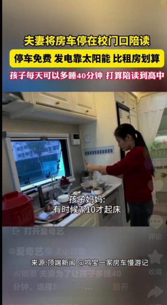校门口的房车陪读:40分钟睡眠背后的家长焦虑与选择 “校门50米外安个家,孩子每天多睡40分钟!”11月20日,山东济南一对夫妇的陪读新操作刷爆网络——他们把房车直接停在学校免费停车场,开启了长达数年的陪读计划,打算一路陪伴孩子到高中。这波“移动学区房”的操作,既让人眼前一亮,也戳中了无数家长的教育痛点。 陪读潮的兴起从不是偶然。教育竞争的加剧让家长们不敢有丝毫松懈,高考独木桥的压力从高中蔓延至中小学,学历在求职升职中的权重更是让家长们坚信“赢在起跑线”的重要性。对很多家庭而言,陪读是无奈之举:学校住宿设施有限,生活老师难以兼顾每个孩子的需求;部分孩子自理能力较弱,宿舍生活的琐碎容易分散学习精力。更关键的是,通勤耗时成为“隐形负担”,像济南这对夫妇此前的经历,孩子6点半就得起床赶路,长期睡眠不足影响成长与学习效率。 面对陪读,家长们的想法呈现鲜明分化。支持派认为这是“理性投资”:济南这位妈妈算过一笔账,学校附近租房六年房租近20万,房车不仅能省下水电气和房租成本,日后还能转卖回本,周末还能当作旅行工具。不少家长感同身受,直言“只要能让孩子专注学习,多花点钱也值得”,毕竟热饭、好觉和即时陪伴,是宿舍生活难以提供的。 但质疑声也同样响亮。有家长吐槽“房车陪读门槛太高”,并非所有家庭都能承担前期投入,且多数学校门口缺乏免费停车位,效仿性极低。更有家长担忧“过度呵护会削弱孩子独立性”,觉得陪读剥夺了孩子自主处理生活琐事、应对人际关系的机会,反而不利于长远成长。 其实,无论是房车陪读、租房陪读还是放手让孩子住校,本质都是家长对教育的重视与权衡。在教育资源不均衡与竞争压力之下,每个家庭都在寻找适合自己的解决方案。这场校门口的陪读实验,终究是可怜天下父母心的生动写照——为了孩子的未来,家长们永远在绞尽脑汁,探索着最用心的付出方式。