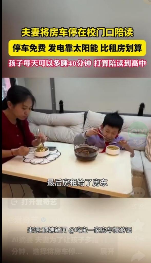 校门口的房车陪读:40分钟睡眠背后的家长焦虑与选择 “校门50米外安个家,孩