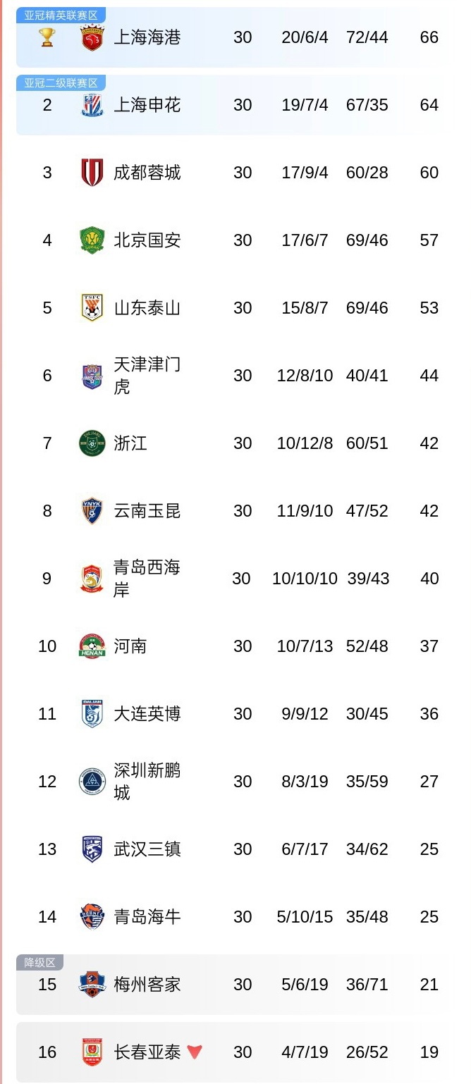 又一载中超大幕落下,又一季中超最终积分榜出炉!