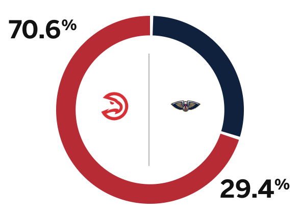 赛前,美媒ESPN预测本场比赛,老鹰胜率70.6%,鹈鹕胜率29.4%。