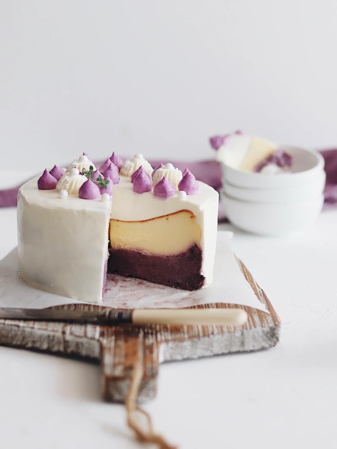 很早就种草这个芋泥巴斯克,前几天有空终于拔草了~虽然我的装饰翻车了,但是蛋糕还是超好吃的,有浓郁的芝士和香甜的芋泥。而且对于新手很友好,只需要搅一搅就可以进烤箱了哦!