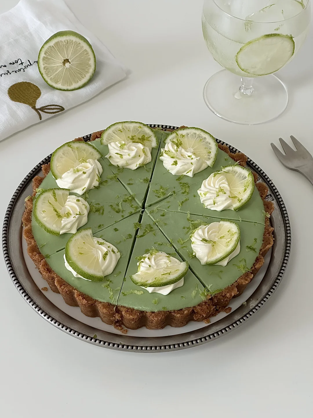 ❺奶油花食材打发挤在挞上,再用柠檬片🍋装饰