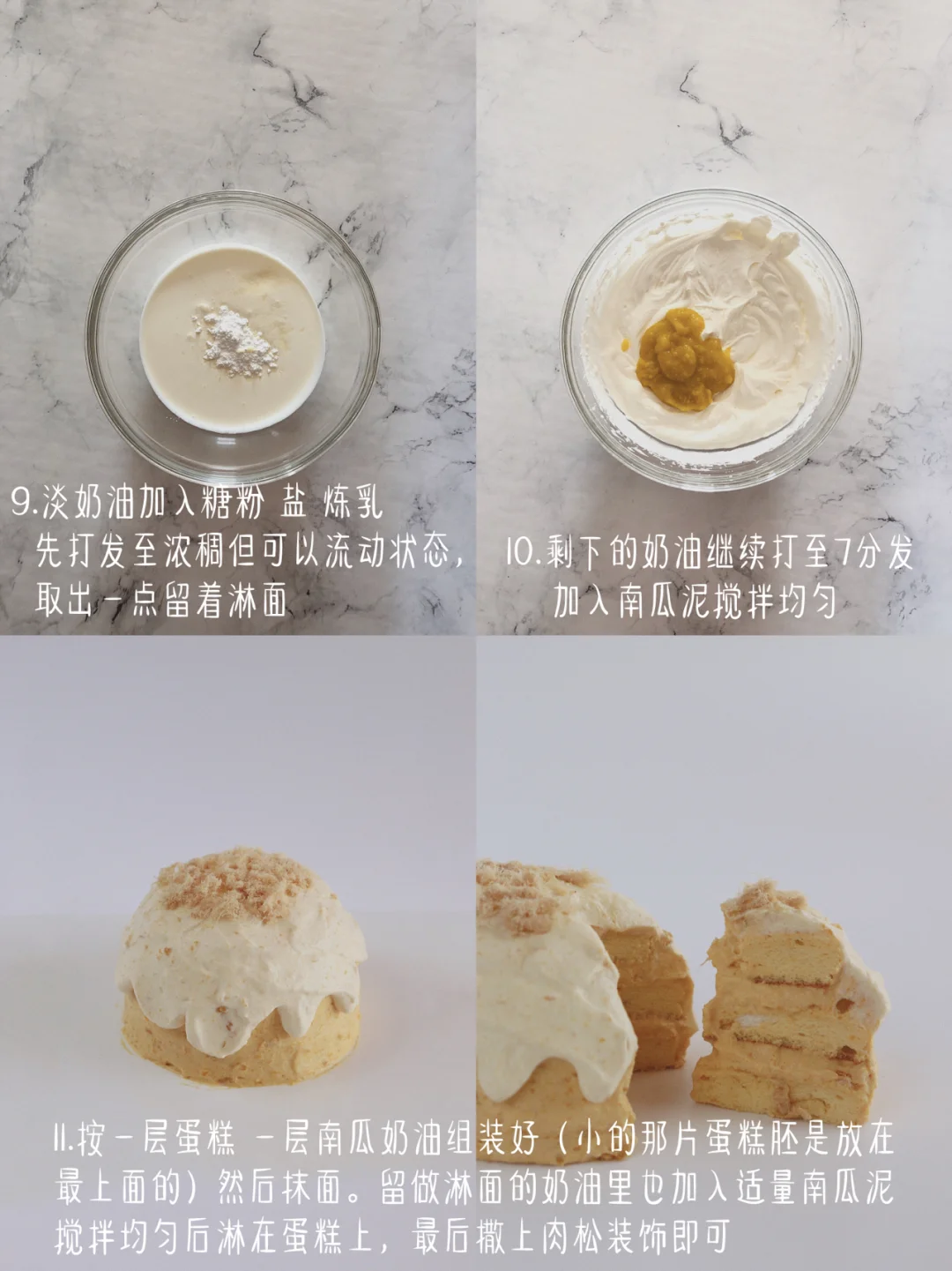 🌈我的南瓜泥特别干,所以蛋糕胚中我加入了50g牛奶,如果南瓜泥含水量比较多,就不要加牛奶了,或者自己斟酌一下加多少哦!