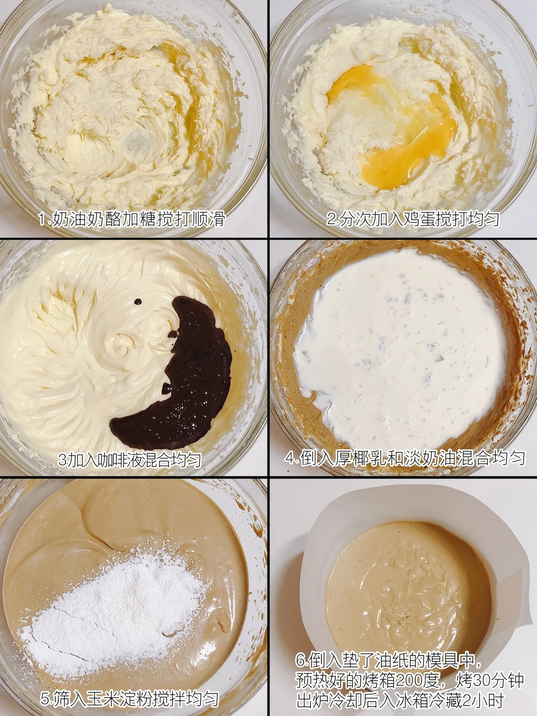 奶油奶酪 250g|糖 65g|全蛋 2个|咖啡液 20g|