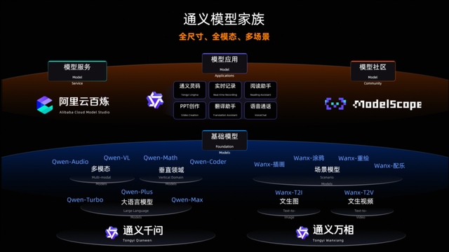 另外,通义模型家族也将悉数亮相。在人工智能技术迅猛发展的浪潮下,大模型已成为科技领域的焦点。阿里自研大模型通义千问是全球领先的大模型之一,在业界率先实现大模型全尺寸、全模态、广开源。基础大模型被誉为“人工智能的皇冠”,通义基础模型目前包含大语言模型通义千问、多模态理解(Qwen-VL让模型看得见、Qwen-Audio让模型听得见)以及多模态生成。3月6日发布的通义千问QwQ-32B推理模型,在保持强劲性能的同时,还能大幅降低部署使用成本。3月28日上线的多模态视觉推理大模型QVQ-Max,支持图像、视频、文本跨模态联合推理,让模型不仅能“看到”,更能“理解”,而且“想得更全面”。目前,基于Qwen模型二次训练的衍生模型数量已突破10万,支持全球30种语言,广受全球开发者欢迎。