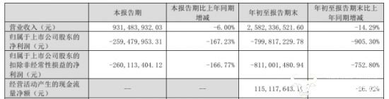 财报数据显示,国联水产前三季度营业收入为25.82亿元,同比下降14.29%,归母净利润为-8.0亿元,相较于去年同期大幅下降905.30%。其中第三季度单季度公司营业收入同比下降6.0%至9.31亿元,归母净利润为-2.59亿元,同比大幅下滑167.23%,营收和利润双双下降,公司盈利情况未能好转。