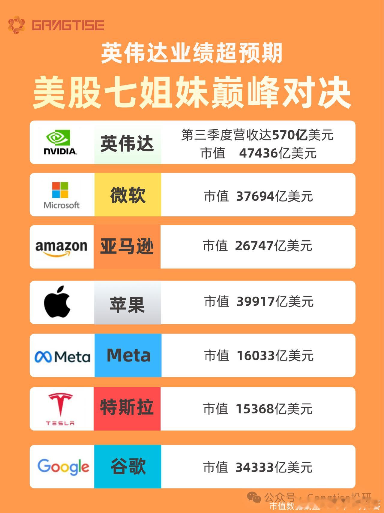 英伟达业绩超预期!美股七姐妹巅峰对决!英伟达财报点燃战局,AI战局再升温!微软、Meta、谷歌、亚马逊、苹果、特斯拉——美股“七姐妹”答卷全面揭晓!