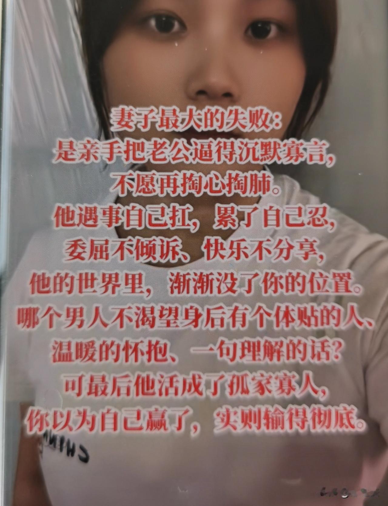 在网上看到几句话,深有感触。其实这是个双输的结局。 当然这其中也许不全是女人的责任,有一半是男人的确没有努力渐渐凉了女人的心。还有一半的确是女人不知足渐渐凉了男人的心。 你是哪一种?