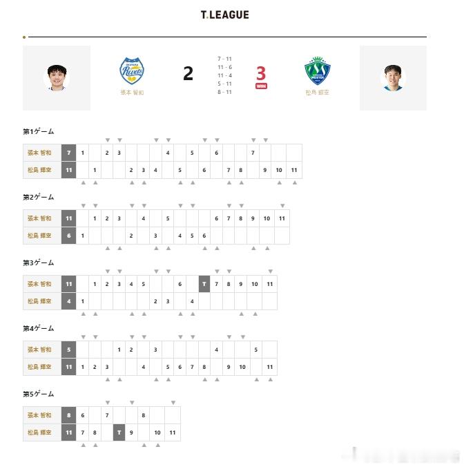 第三盘 张本智和 2:3 松岛辉空 (-7,6,4,-5,-8)比赛还在进行中