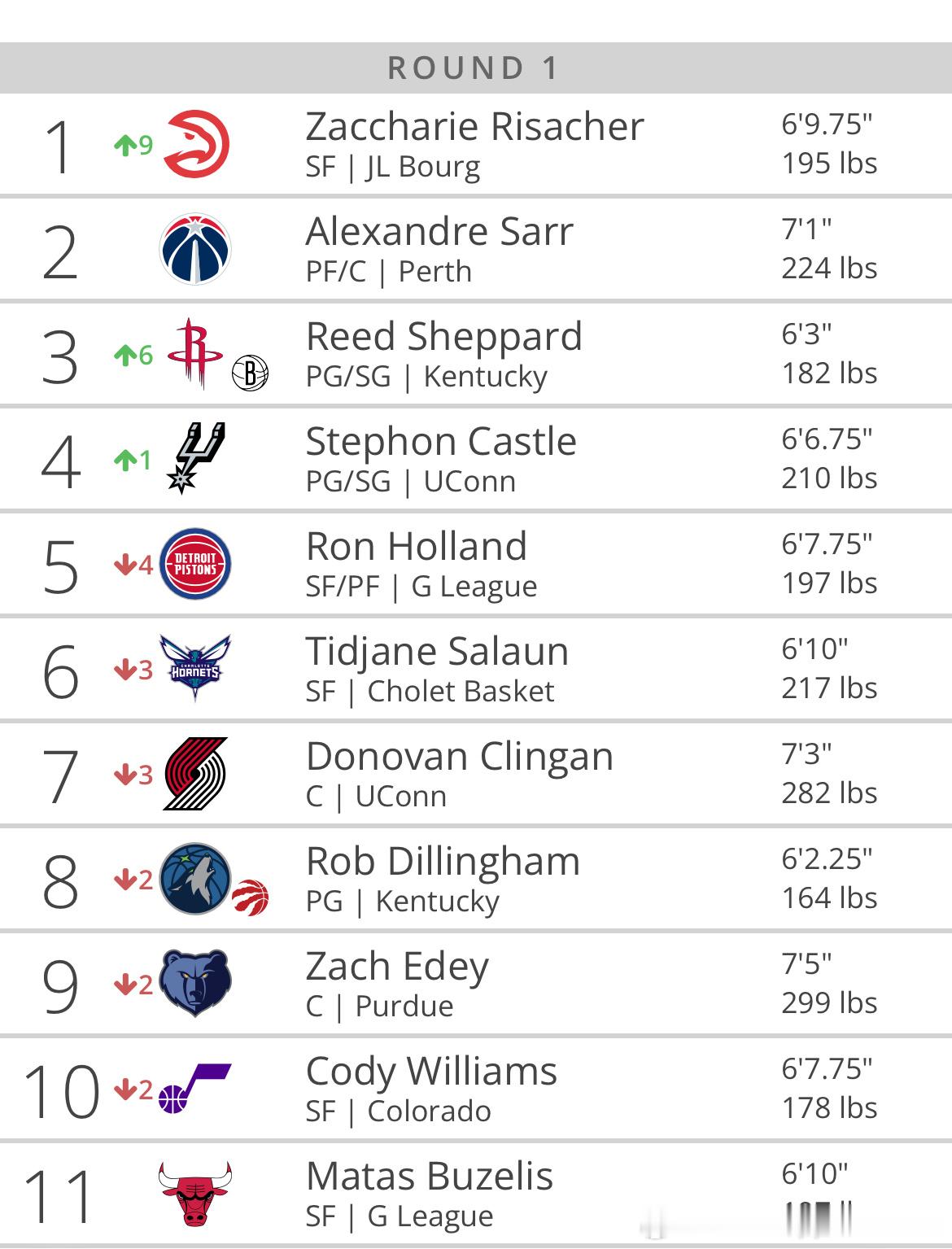 回想下24年 篮网本来是倒9战绩…幸好抽到了3号签(秒提升6个顺位)… 不然肯定选不到谢泼德…(再看看kon都是25年4顺位….)如果篮网签还是9 顺位…那只能在dillingham,布泽利斯,cody 威廉姆斯, 等等…,这几个里面选,更可能的是交易到这个9顺位(就像斯通说的没拿到前4的话,就准备交易掉这个签)…当时记得有句话挺有意思“ 9号签推荐选谢泼德,怎么3号签还选谢泼德….”,好多人真的那时候没看懂斜坡的作用…(那时候2月份的时候,我们大致就感觉reed可能是前3顺位,我们大胆讨论过1-3顺位选斜坡,当时虽然有玩笑的成分,以及8-9可能选不到斜坡的情况….刚好就有预感斜坡是三号签,如图2)事实上,如果真的是9号签,啥都选不到… 没有好的…想象下如果火箭没抽到3号签,谢泼德可能是马刺的… 那么马刺是”文班+ 谢泼德”组合…. 这… 没法玩了…如果再按照25年马刺拿到harper… 那就是”文班+ 谢泼德+ 哈珀”的超级组合(这甚至不比当年雷霆三少差多少)…. 那真的未来要王朝起步了…..想想都可怕