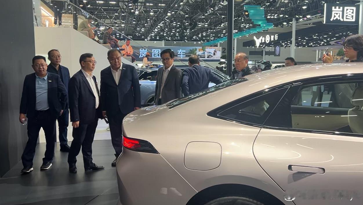 比亚迪王总带领一众高管在东风日产N6展车旁,久久不愿离去 提前准备好N6产能哦这车感觉要爆!!!