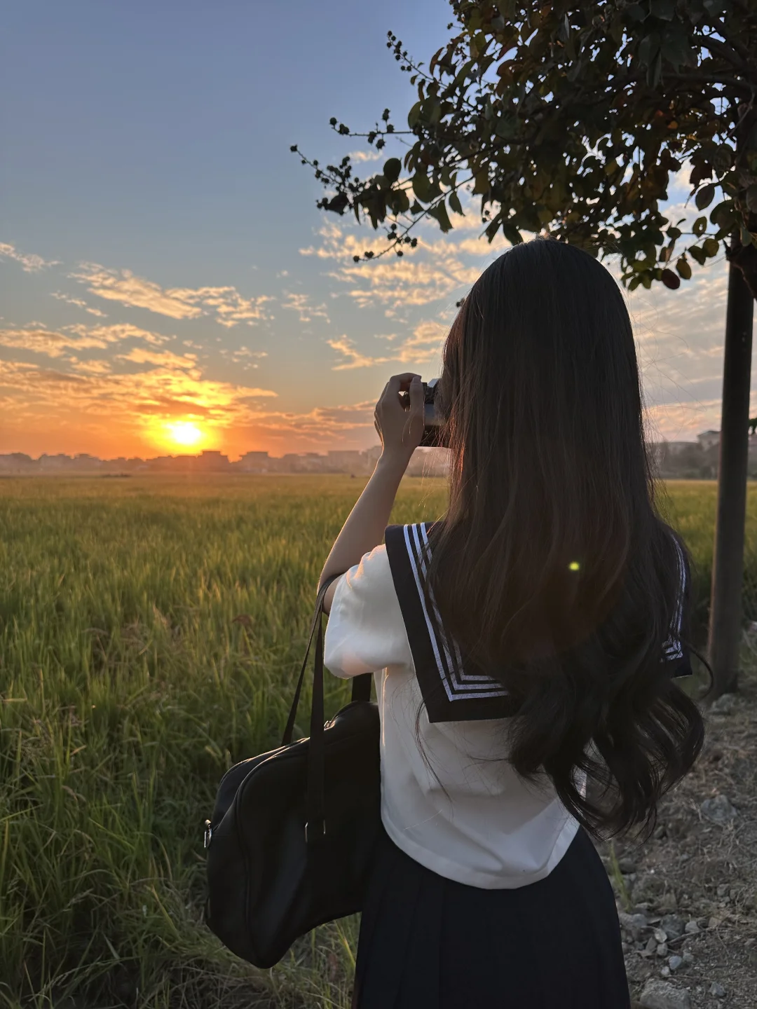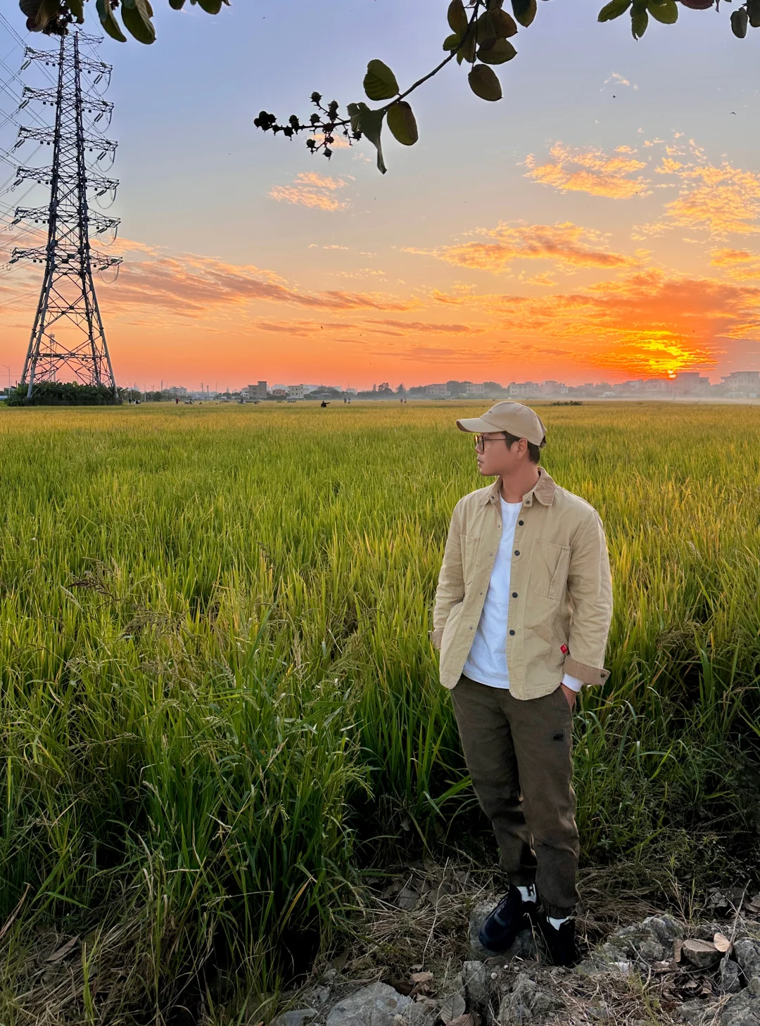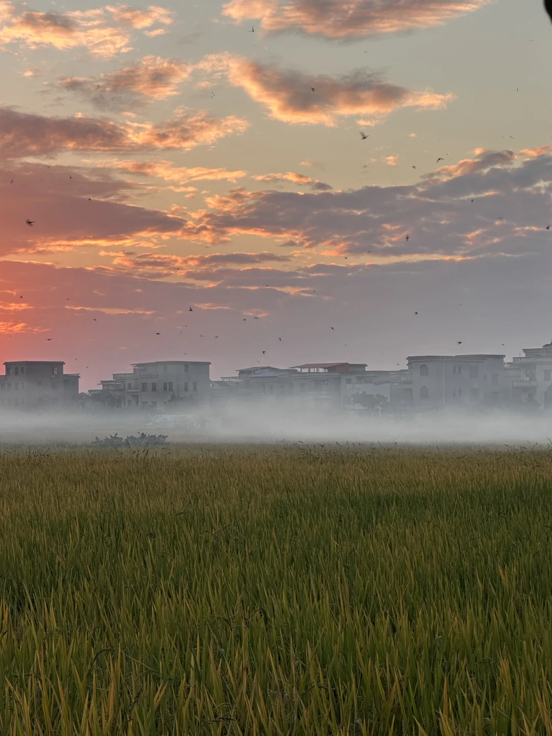🚇直达!拍到了稻田🌾+火烧云日落🌄