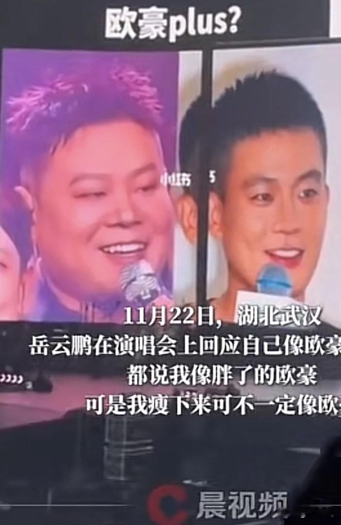 近日,岳云鹏老高兴了,睡觉都能笑醒,都说他像胖了的欧豪,撞脸欧豪,欧豪多帅啊,180的大个,一笑俩酒窝,岳云鹏也有酒窝,欧豪比岳云鹏小7岁呢,那不就是夸岳云鹏年轻嘛,能不高兴吗? 岳云鹏还挺有自知之明:“我瘦下来可不一定像欧豪,欧豪可能也不想像我”,哈哈…… 欧豪也万万没有想到……