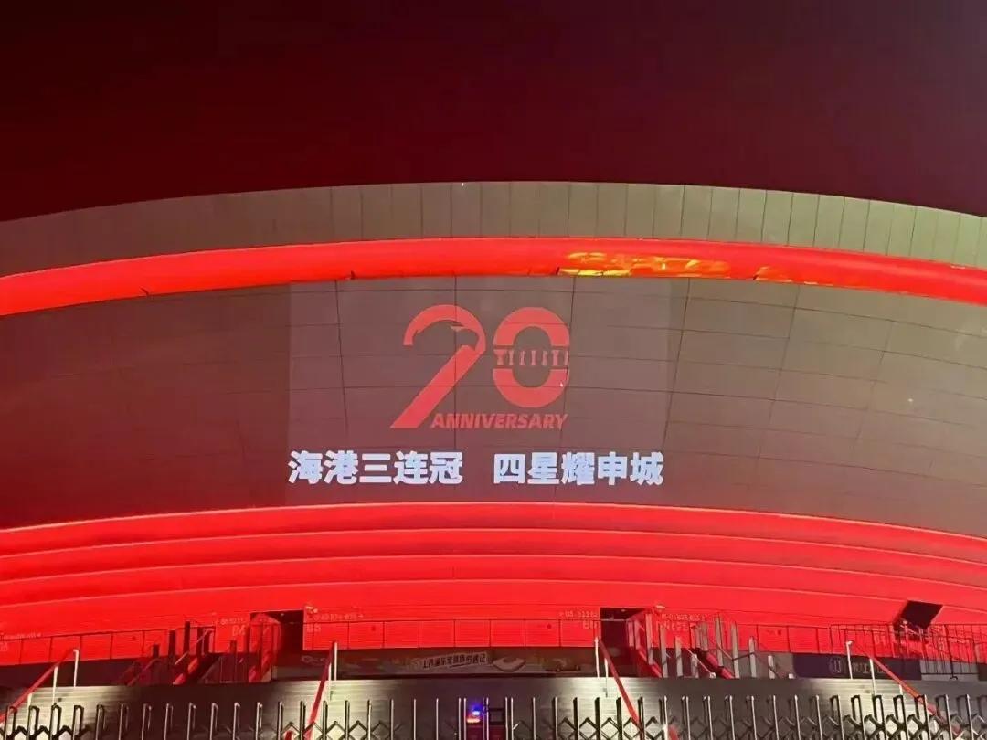 虎扑11月23日讯上海海港成功夺取2025赛季中超联赛冠军,据“上汽浦东足球场”官方微信公众号报道,就在海港夺冠当晚,白玉碗球场外屏灯光亮出“海港三连冠,四星耀申城”,庆祝上海海港历史上四次夺得中超冠军,并且连续三年夺冠。