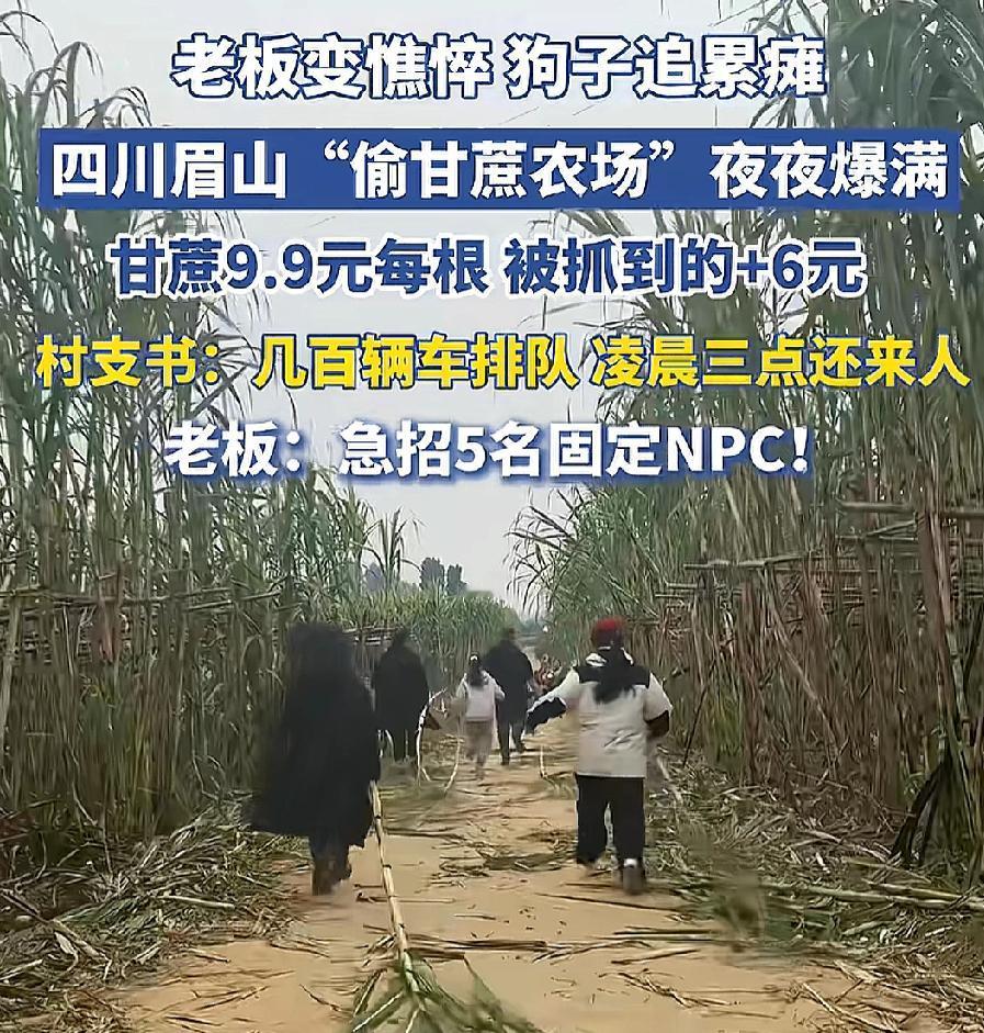 喊我吃甘蔗, 我可能没兴趣。 但要是能正大光明的偷甘蔗,怎么都要去试下。 四川眉山“偷甘蔗”农场,这几天可谓是夜夜爆满,就算是凌晨2、3点,也还有人来。 老板养的狗子已快累到昏厥了,老板更是削皮削的人都麻了。 逮到15.9元一根,没逮到就9.9元一根,这钱也不多,但能享受满满的情绪价值,怪不得会爆火!