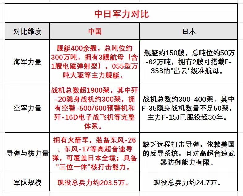 日本会醒悟嘛? 一:当前日本的军力,和中国的军力对比,明着看中国是日本的2-5倍