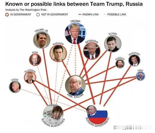 早在川普第一任期期間,「華盛頓郵報」的調查記者團隊對於川普及其決策層進行了深層次地調查,結果顯示,幾乎所有的川普當局決策層人士都與俄羅斯寡頭資本、大企業或者俄國政府決策高層有著密切和多方面的深刻聯繫。