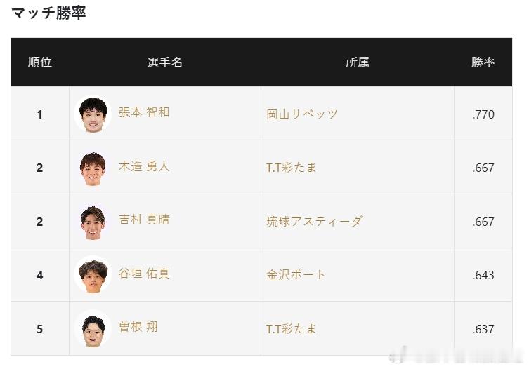 本周末(11月22日、23日)的比赛结束后,冈山队15战8胜7负积25分,超过琉球升至第4位,比第3位T.T彩玉落后2分。张本智和男单13战10胜3负,胜场数升至第1,胜率保持第1。