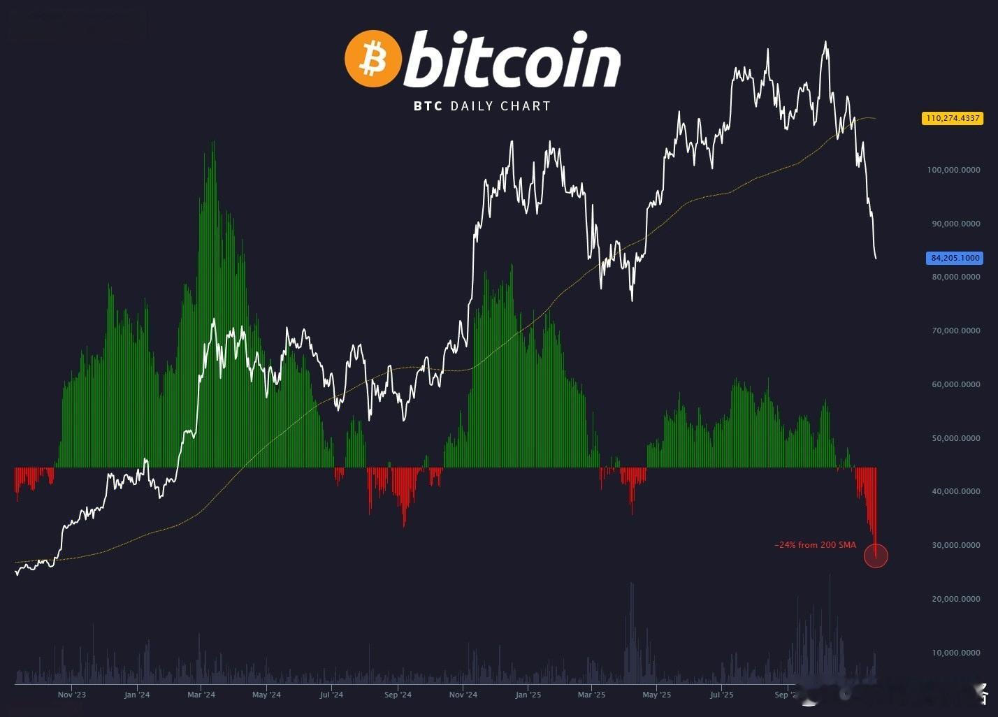 自2022年FTX崩盘以来比特币市场最剧烈的恐慌性抛售潮,价格大幅低于200日线
