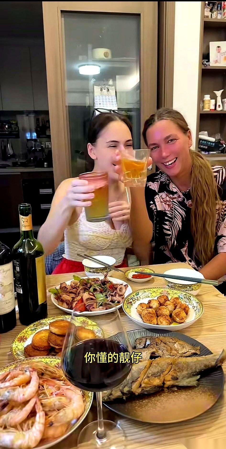 当着自己亲姐姐的面,把自己老公,不,是把自己老公这一整个“型号”的男人,拼命推销出去。 这是一种什么体验? 俄罗斯媳妇请自家姐姐吃饭,一桌子大虾、鳕鱼饼、炸鱿鱼圈……红酒杯一端,话匣子就收不住了。 “我老公可好了!潮汕男人都特别好!姐,你也赶紧找一个!” 你看这架势,哪是请客吃饭啊。 这简直是开了一场精准的“跨国婚恋项目”招商会。 妹妹本人,就是活生生的成功案例,容光焕发,一脸嫁对人的幸福感。 她老公,就是那个被推到台前的“明星产品”,帅气,能干,还会做饭。 她姐姐,就是那个被重点公关的“潜在投资人”,盘靓条顺,完全符合市场预期。 说白了,女人过得好不好,全都写在脸上。 那种从骨子里透出来的滋润和底气,是装不出来的。 她为什么这么卖力地“安利”? 因为她自己就是最大的受益者。她过得好,所以她希望自己最亲的人,也能复制她的幸福。 这比任何宏大的宣传片都管用。 这才是最顶级的文化输出啊——不是输出别的,是输出一个“好老公”的样板。 一个会疼人、会做饭、顾家的中国男人,就是有这种朴素又致命的吸引力。 最后那一声“乌拉”,喊得是真带劲。 赢麻了,真的。