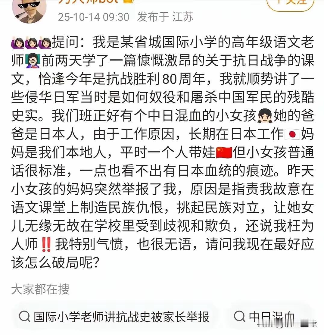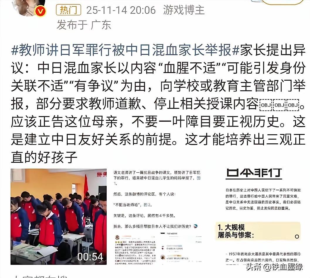 中日混血家长举报语文老师:讲日军罪行就是“制造仇恨”? [发怒][发怒][发怒]