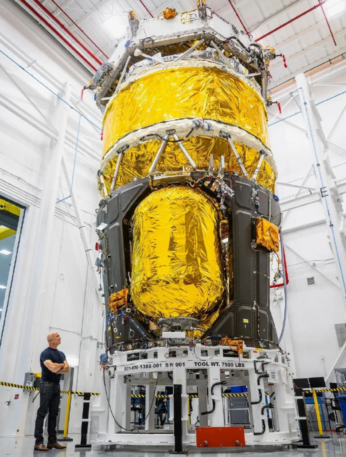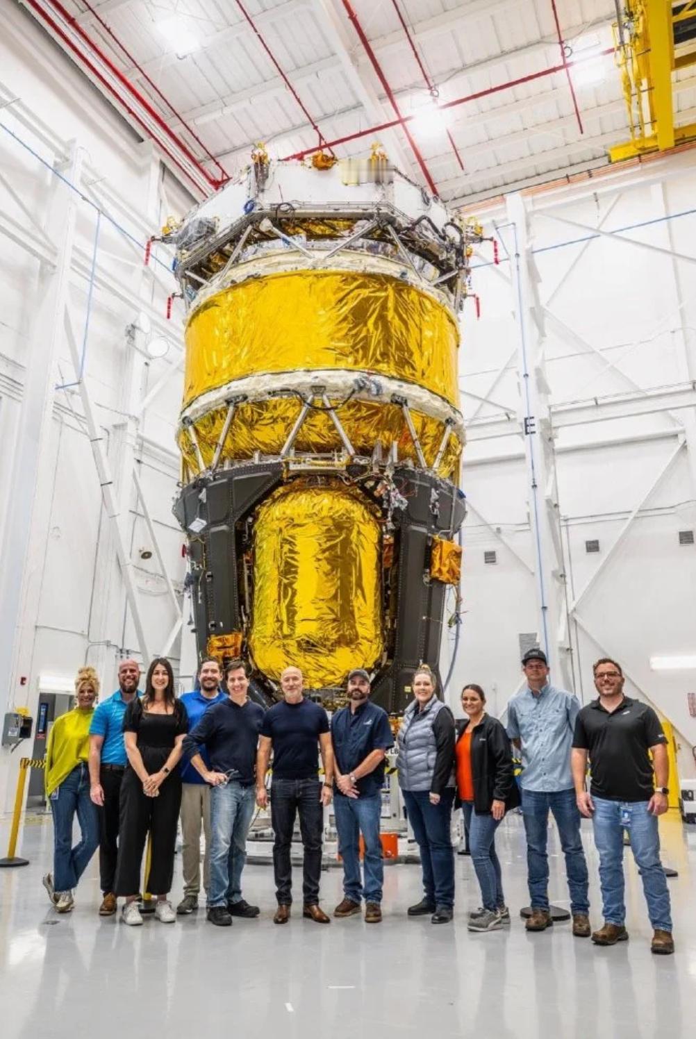 被马斯克攻击“copy cat”后,贝索斯秀出了载人登月舱验证舱mk1真机,预计明年二月由新格伦火箭发射。