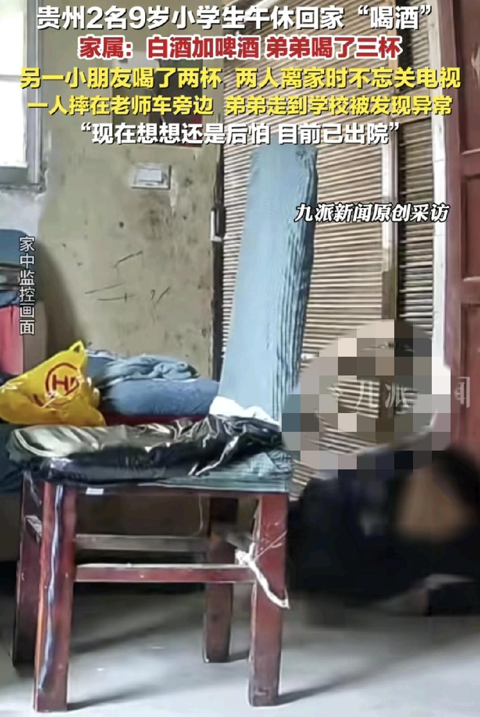 贵州贵阳两名9岁男孩午休回家偷和白酒加啤酒,两人喝醉了上学还不忘关掉电视,其中一男孩走到学校摔倒在老师车旁边,另外一男孩走到教室被老师发现异常,后两人被送往医院。家长觉得后怕,孩子说当时看着脚走过去的。平时家长在家喝酒,小孩子好奇心也很重,家长不在家时一定要把酒放好。