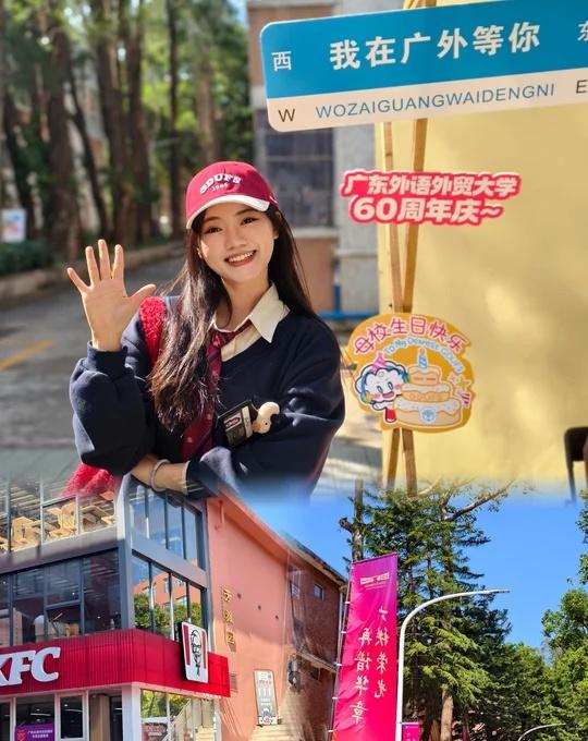 今天回母校!广外60周年生日快乐! 2019级毕业 当时的校门拆掉重建 北门一条街也拆掉了 整个学校都破破烂烂 陈旧至极 今天回去发现好多地方都翻新了 校门大气重建 一栋教学楼直接拔地而起 就连教室的屏幕都高级许多 花草树木郁郁葱葱 饭堂也翻新了 竟然还开了一家KFC!!震惊 俨然一个新学校 不禁想感慨:我们那时候哪有你们这条件!可以看出来这次校庆是有下血本的 不过也是真的希望母校越来越好 回家真好广外60周年校庆 广外