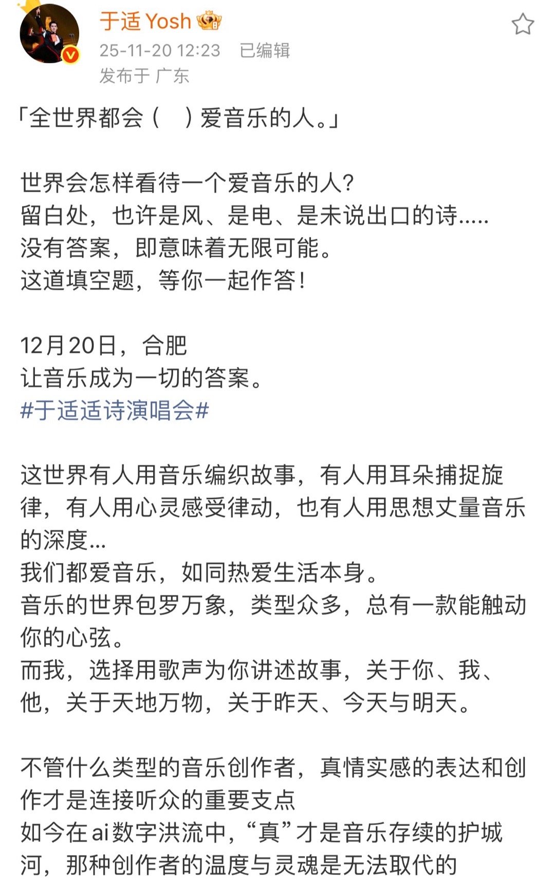 于适《适诗演唱会》的文案和物料都好文艺啊
