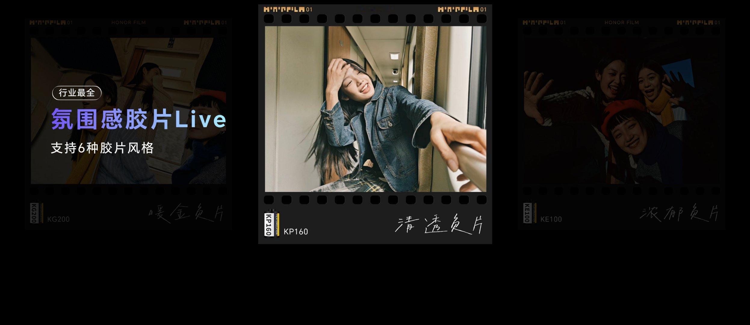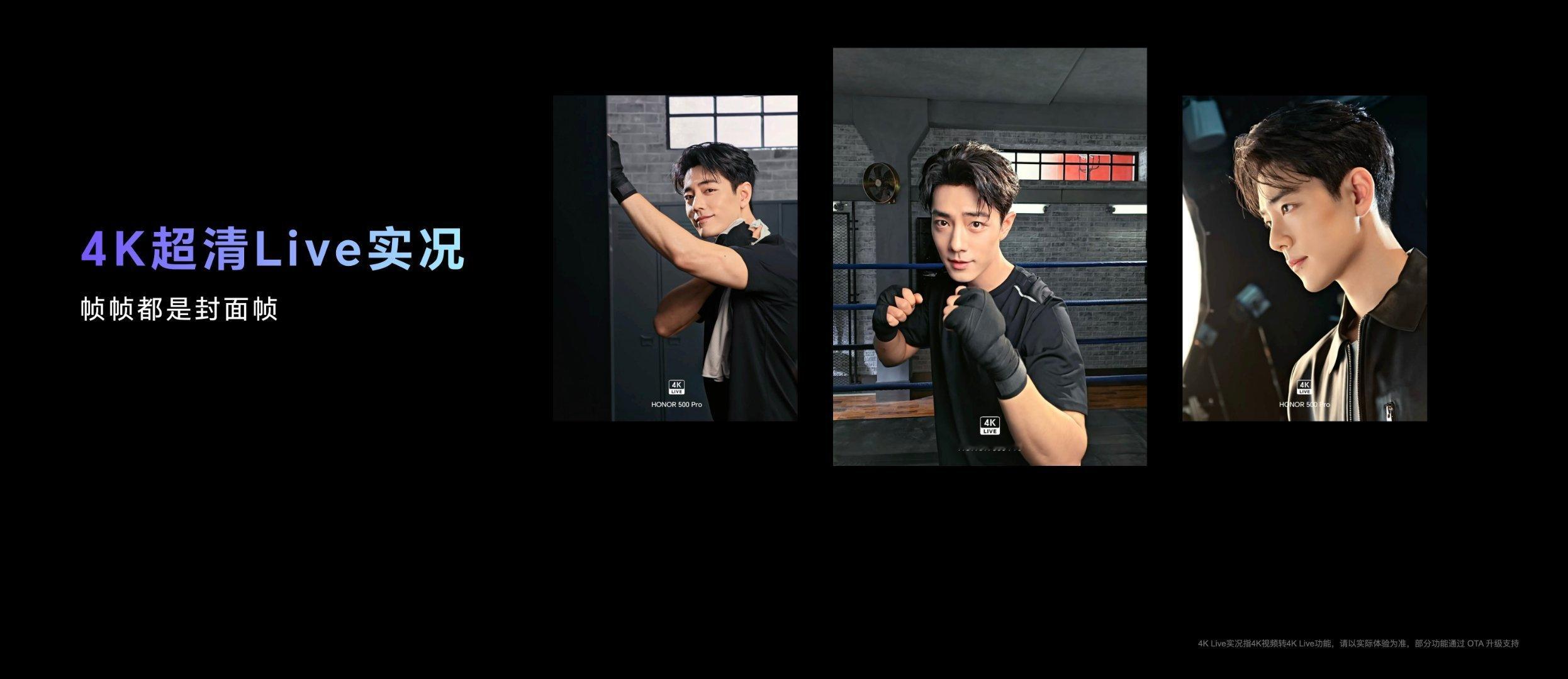 荣耀 500 系列 Live 玩法也挺多的,首发行业唯一前后置 Live 人像美颜&虚化、“帧帧主角”虚化效果、6款胶片色彩、“破框而出”Live 特效、Live 路人一键消除、4K 视频转 Live,支持 YOYO 一语暗光增强、一语贴纸合拍等。 实况玩法挺多的,荣耀 500 系列行业首发破框而出 Live 特效,支持前后置 Live 人像美颜/虚化,4K 超清 Live。