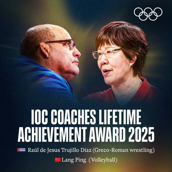 据国际奥委会官方消息, 获得国际奥委会颁发的教练终身成就奖。中国排球教练郎平与古巴摔跤教练劳尔·德·赫苏斯·特鲁希略·迪亚斯共同领取了国际奥委会颁发的教练终身成就奖。该奖项由国际奥委会主席克里斯蒂·考文垂和国际奥委会运动员随行人员委员会主席谢尔盖·布勃卡共同颁发。郎平现年64岁,她曾担任中国女排主教练,带领中国女排获得里约奥运会冠军,2019年,率领中国女排获得女排世界杯冠军。2021年,郎平卸任中国女排主教练。