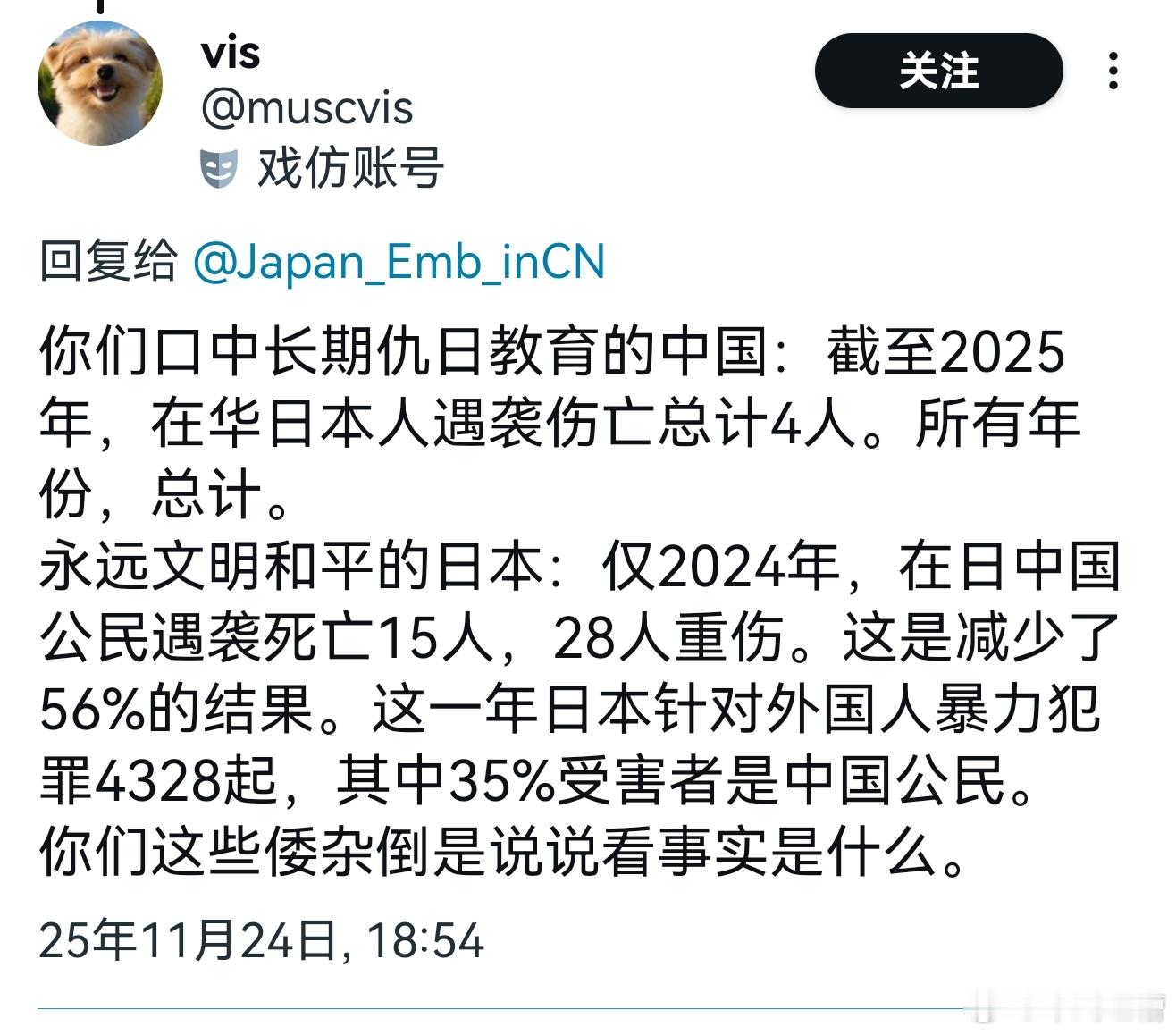 日本驻华大使馆称日本对中国人的袭击并不多,日本安全形势也没有变差,网友直接用数据打脸