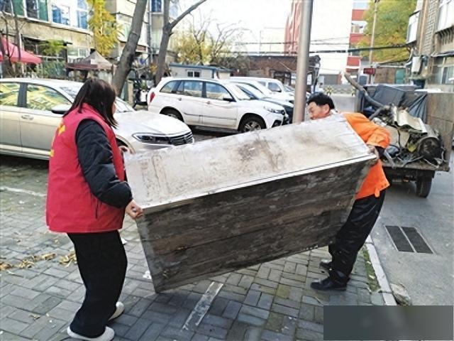 本报讯(记者韩睿文/摄)一住户长期将废旧家具丢在小区楼院的停车位上,挤占车位,遭到邻里投诉。经过机床西社区网格员劝导教育,涉事居民认识到错误,主动配合清理,化解了这一矛盾。