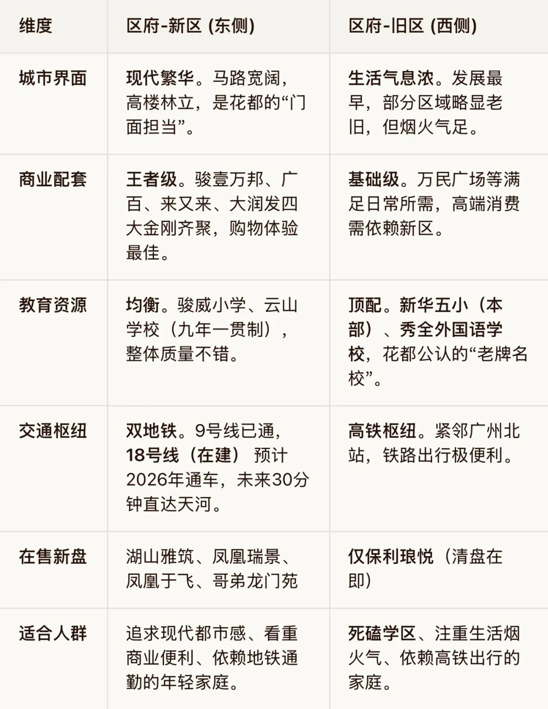 如果你是“通勤族”:首选新区。18号线通车后,这里将是花都连接市中心最便捷的区域。凤凰于飞(品质好)和凤凰瑞景(价格低)是两种不同预算的选择。