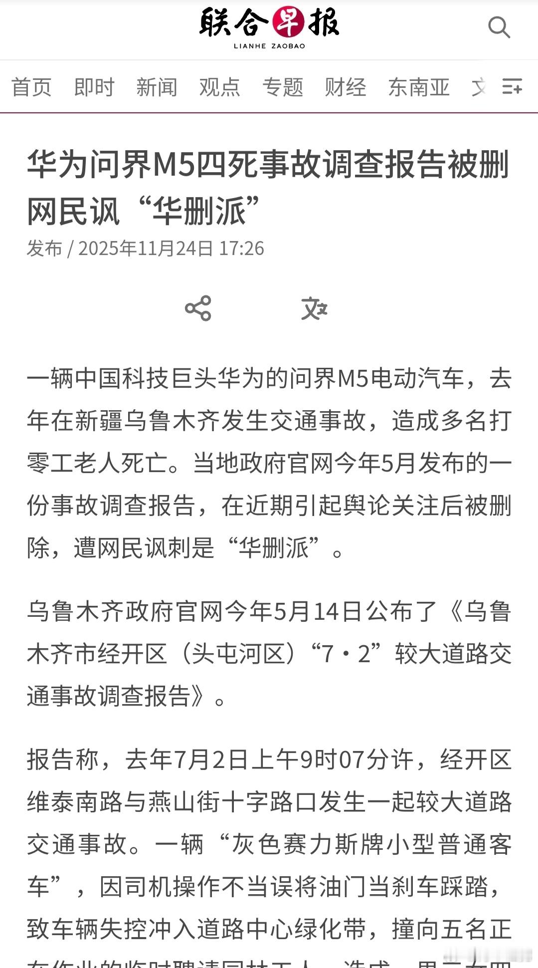 建议封杀联合早报,居然敢报道问界事故,居心何在,还起绰号“华删派”,太坏了,不知道是哪个地方的小报纸。论媒体公信力,我只相信第一财经。--更新--居然图裂了,补图