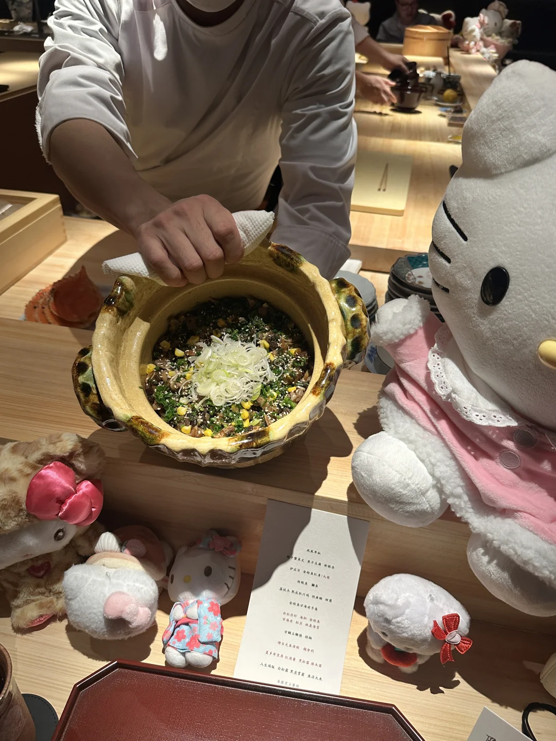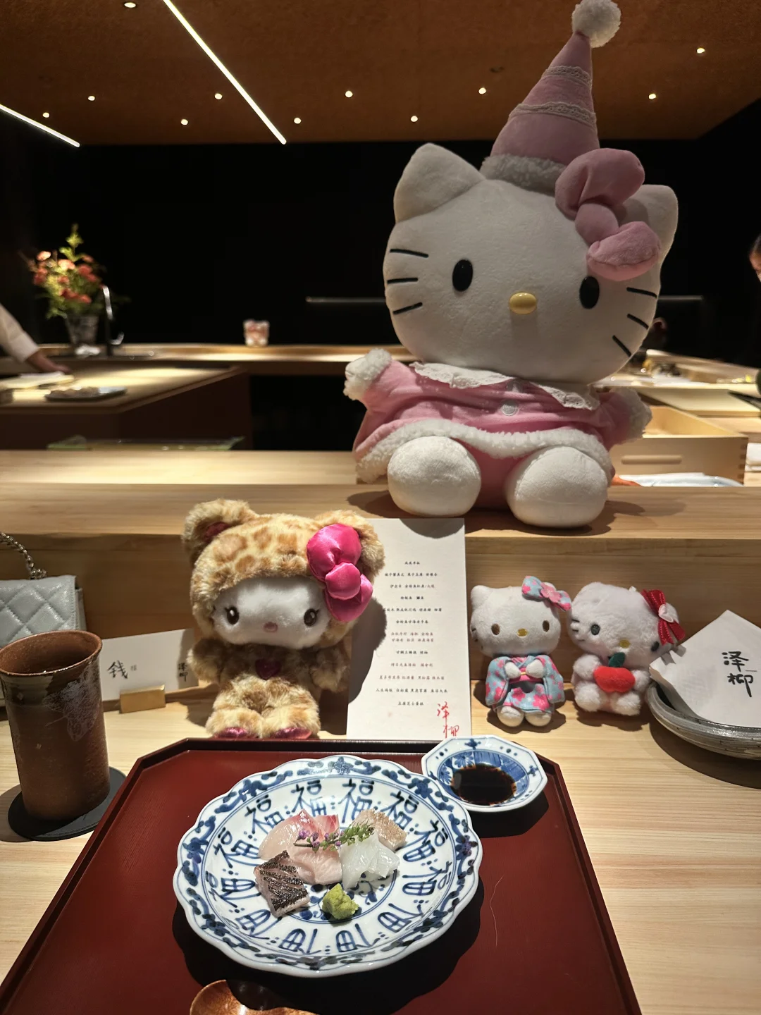 武汉也有kitty主厨啦在恒隆的泽柳日本料理 环境很好哦 黑金风格装修很高级 味道也很不错 食材品质看得出来是很用心 还和kitty小哥哥合照啦 🥰满足 今年冬天想二刷 漂亮饭
