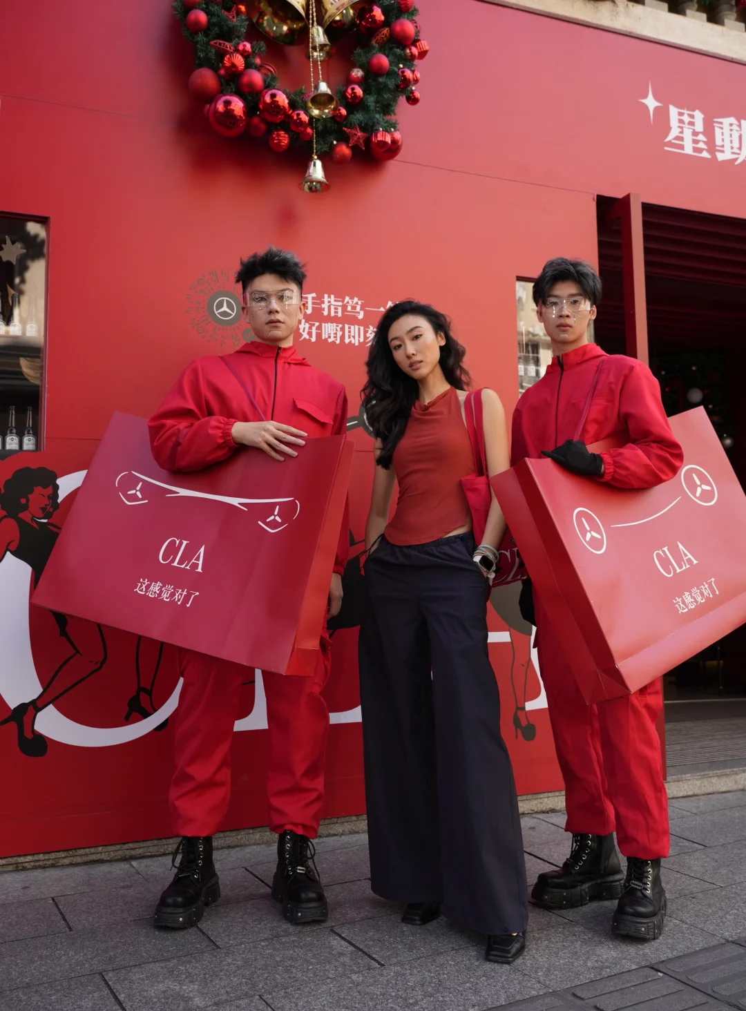 化身“痛车”的 CLA 在百年老街上特别有冲击力