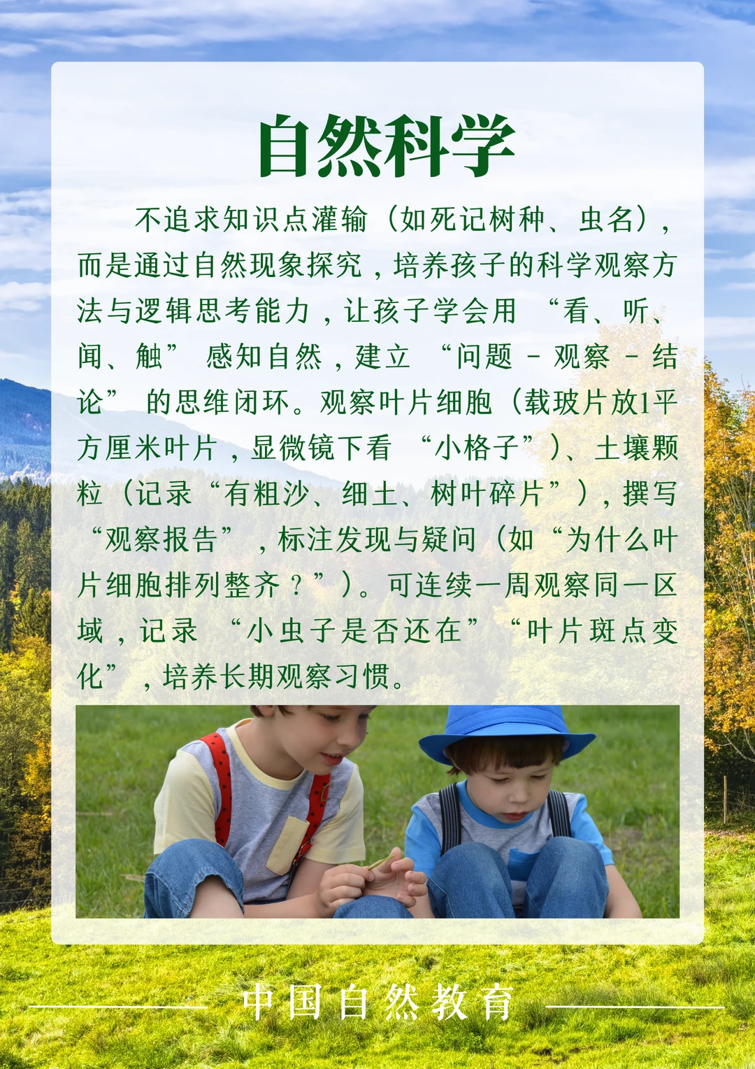 自然教育的九大学科并非孤立存在,而是各有侧重又相互联动,搭建起孩子的成长网络——一个游戏可能同时覆盖多个学科,但只要明确核心目标,就能精准培养孩子的能力。