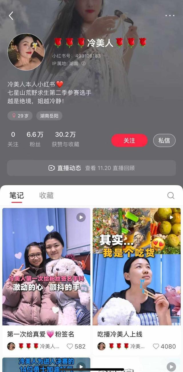 11月20日,入驻小红书,首篇视频笔记获赞数超过10万,目前粉丝已有6.6万,并发布视频为进入决赛的14为勇士加油打气。